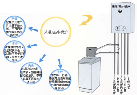 水的硬度主要是有鈣(Ca2+)、鎂(Mg2+)離子構(gòu)成的。當(dāng)含有硬度離子的原水通過軟水器內(nèi)樹脂層時,水中的鈣(Ca2+)、鎂(Mg2+)離子被樹脂交換吸附,同時等物質(zhì)量釋放出的鈉(Na2+)離子。從軟水器內(nèi)流出的水就是去掉了硬度離子的軟化水。